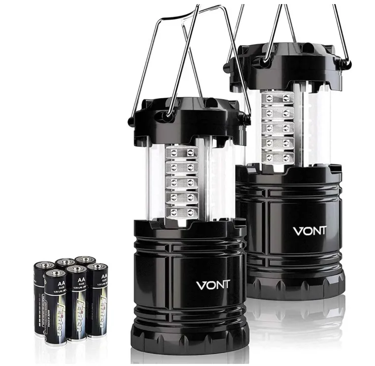 2 pack of compact battery powered LED lanterns that are safe for inside of your tent or on a walk to the restrooms at the campground. These lanterns are easy to operate and a great addition to any campsite. Comes with brand new batteries ready to go!